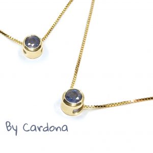 CADENA Y DIJE ORO AMARILLO 18 K CON ZAFIRO NATURAL TALLA REDONDA 0,15 ct