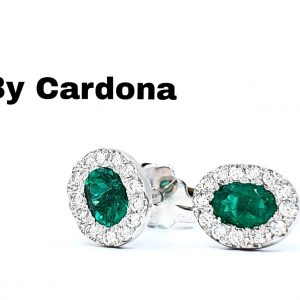 Topos oro blanco 18 K ESMERALDA ovalo con diamante natural