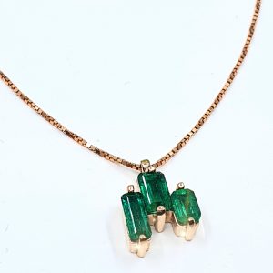 Saldo cadena y dije oro rosa 18 k con esmeralda natural