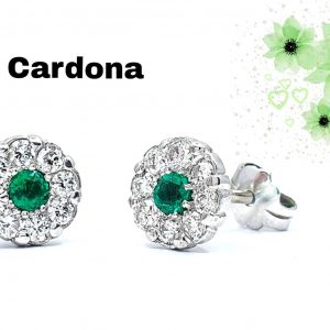 Topos oro blanco 18 K FLOR con esmeralda natrual y diamante