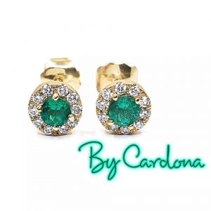 TOPOS ORO AMARILLO 18 K CON ESMERALDA NATURAL Y DIAMANTE
