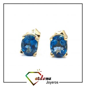 TOPOS ORO AMARILLO 18 K CON TOPACIO NATURAL LONDON BLUE