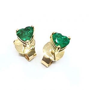 Topos oro amarillo 18 k y esmeralda natural talla corazon