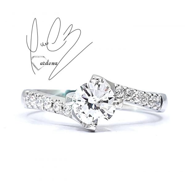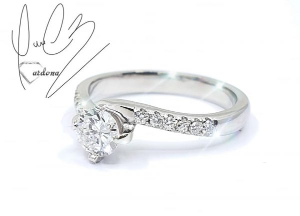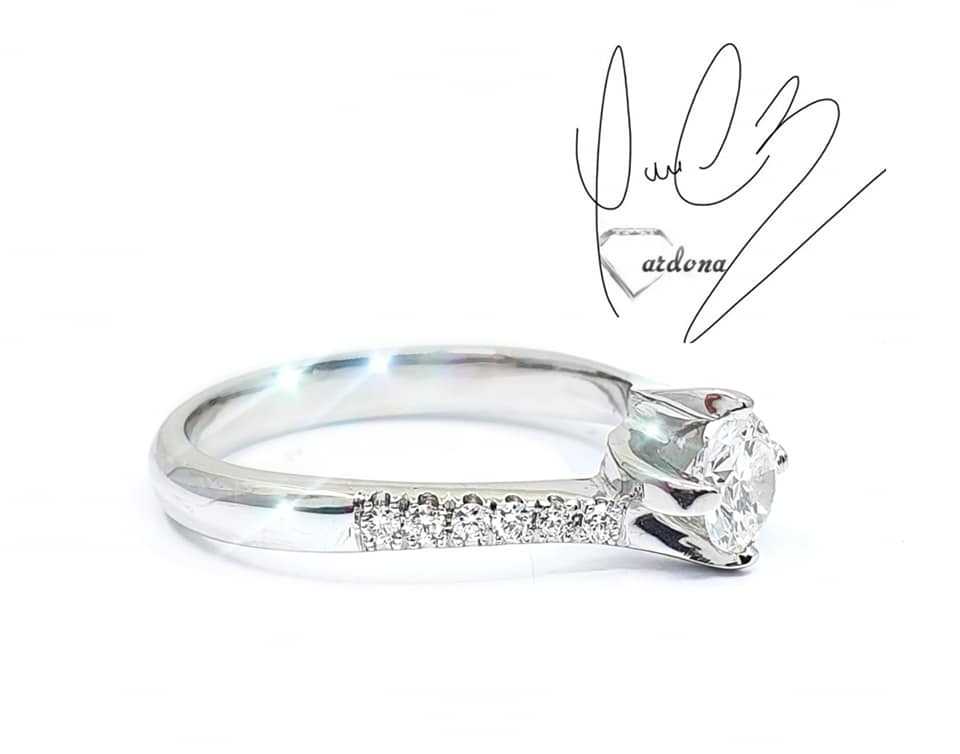 ANILLO COMPROMISO ORO BLANCO 18 K CON DIAMANTE NATURAL 0,42 CT ADORNADO CON 0,12 CT DIAMANTE NATURAL