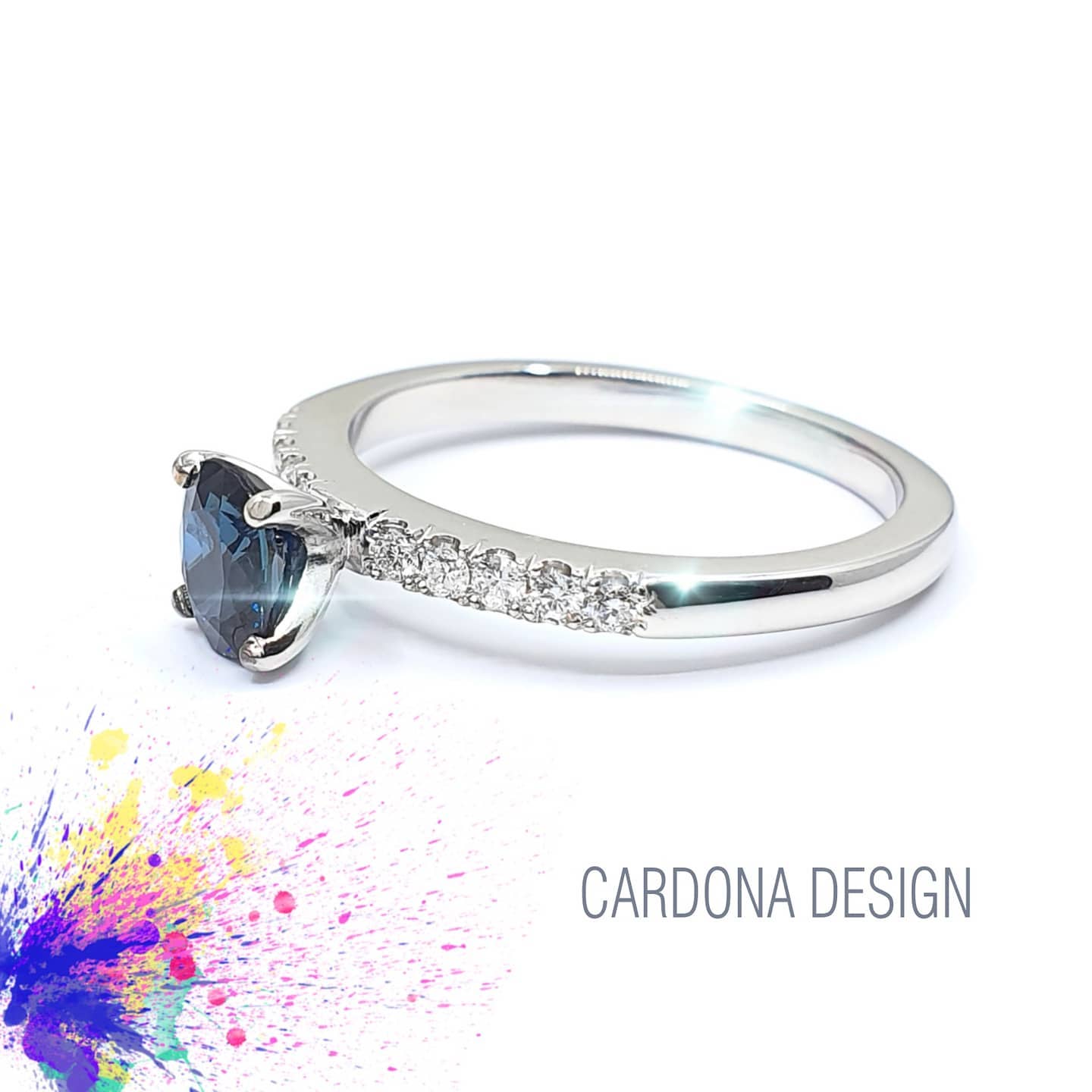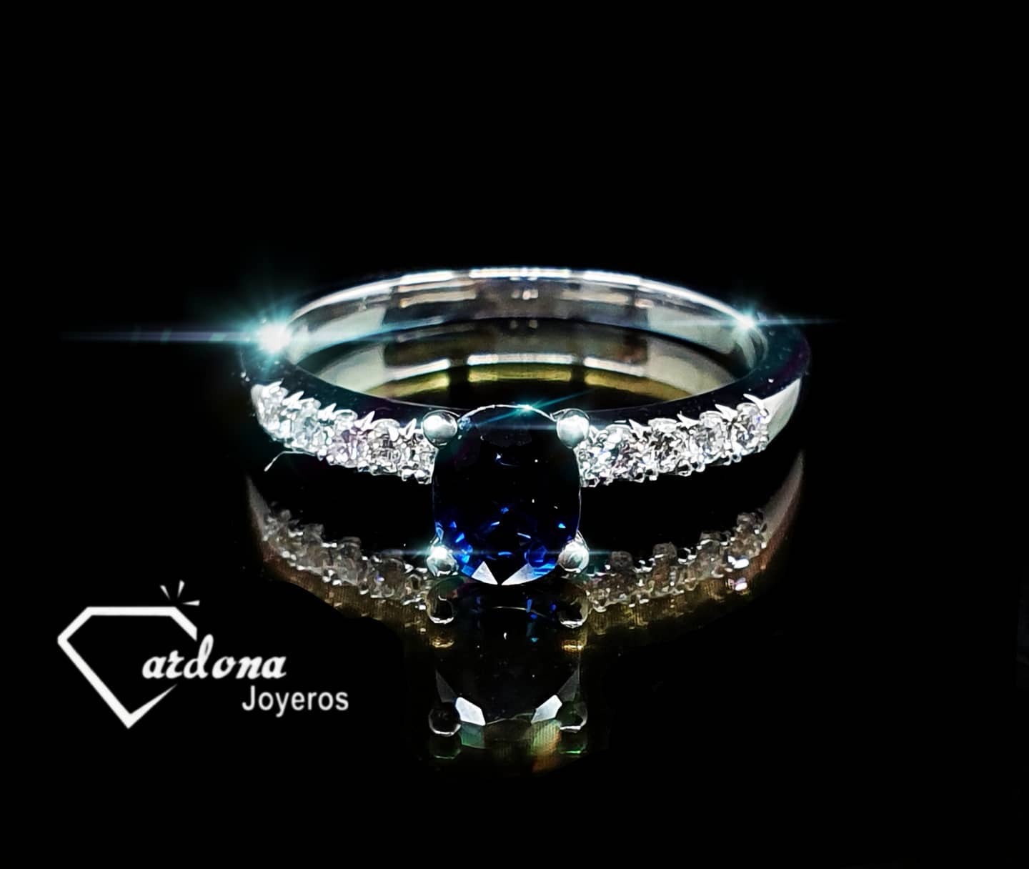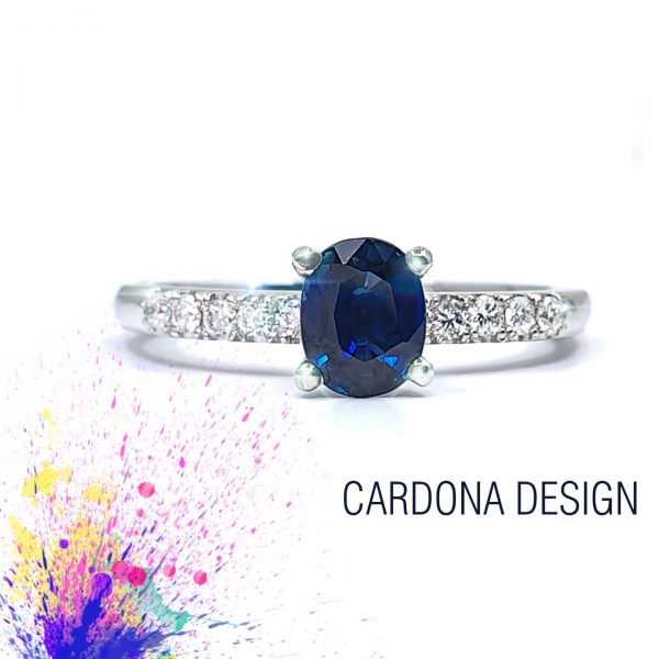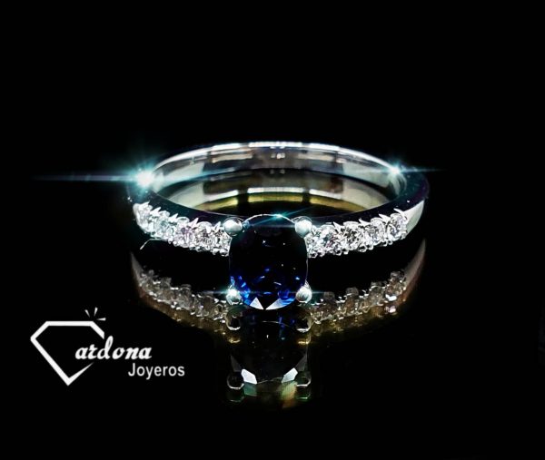 zafiro y diamante en oro blanco