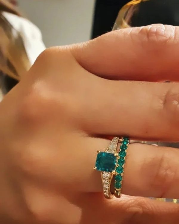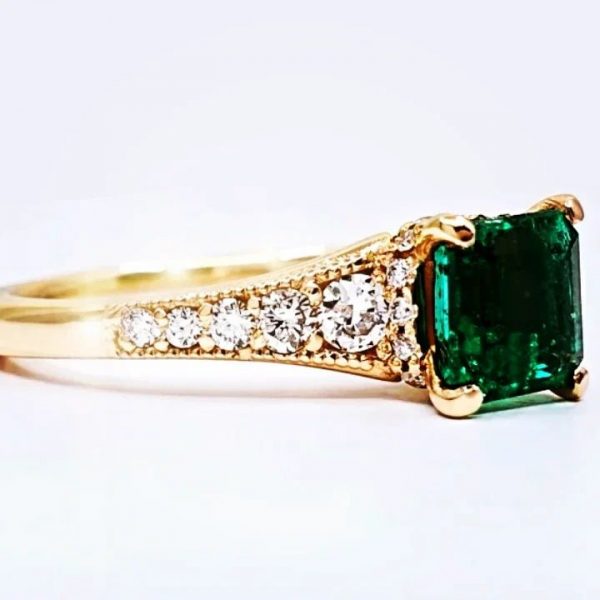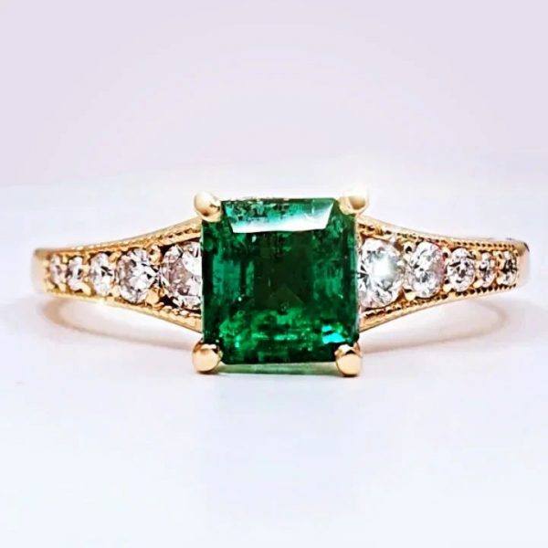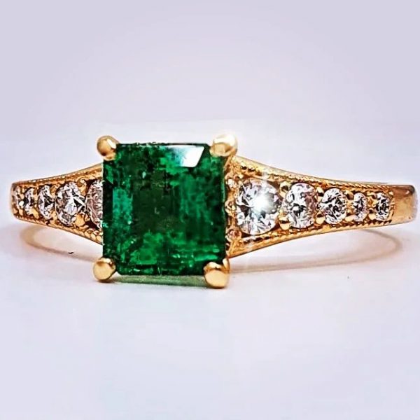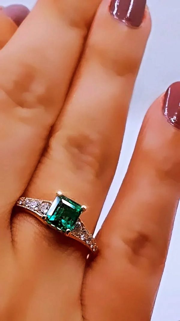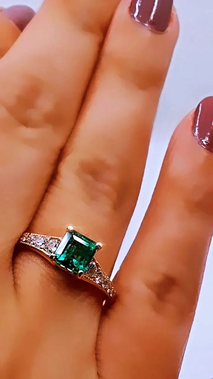 Anillo oro rosa 18 k con Esmeralda natural 1 ct peso total aproximado adornado con 0,30 ct diamante natural