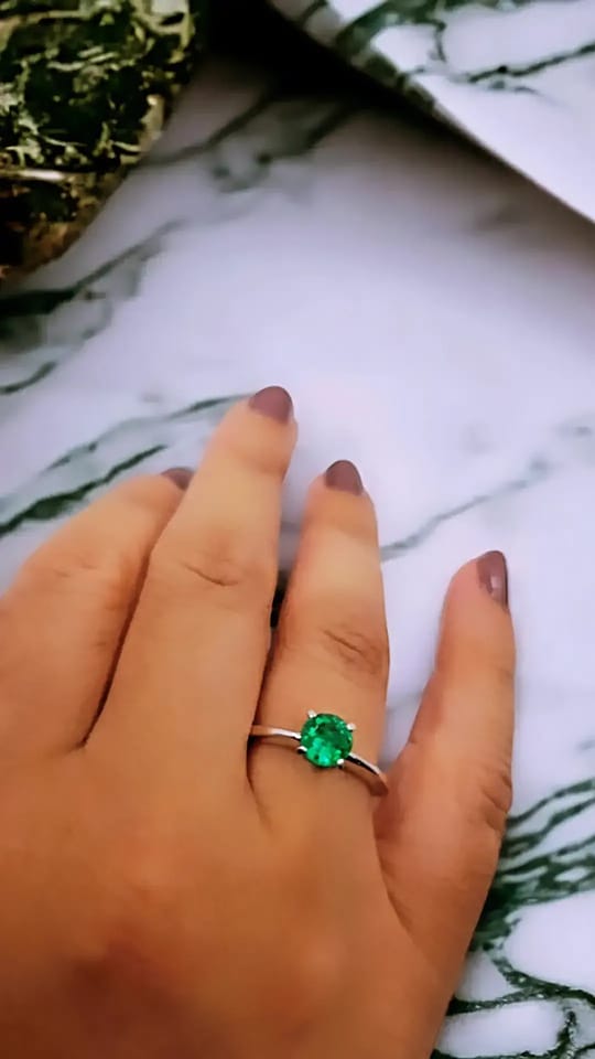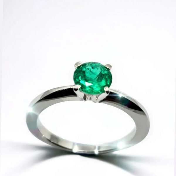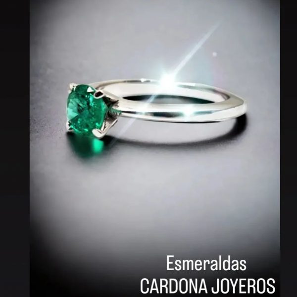 anillo solitario oro blanco 18 k con esmeralda natural talla redonda 0.7 ct peso total aproximado