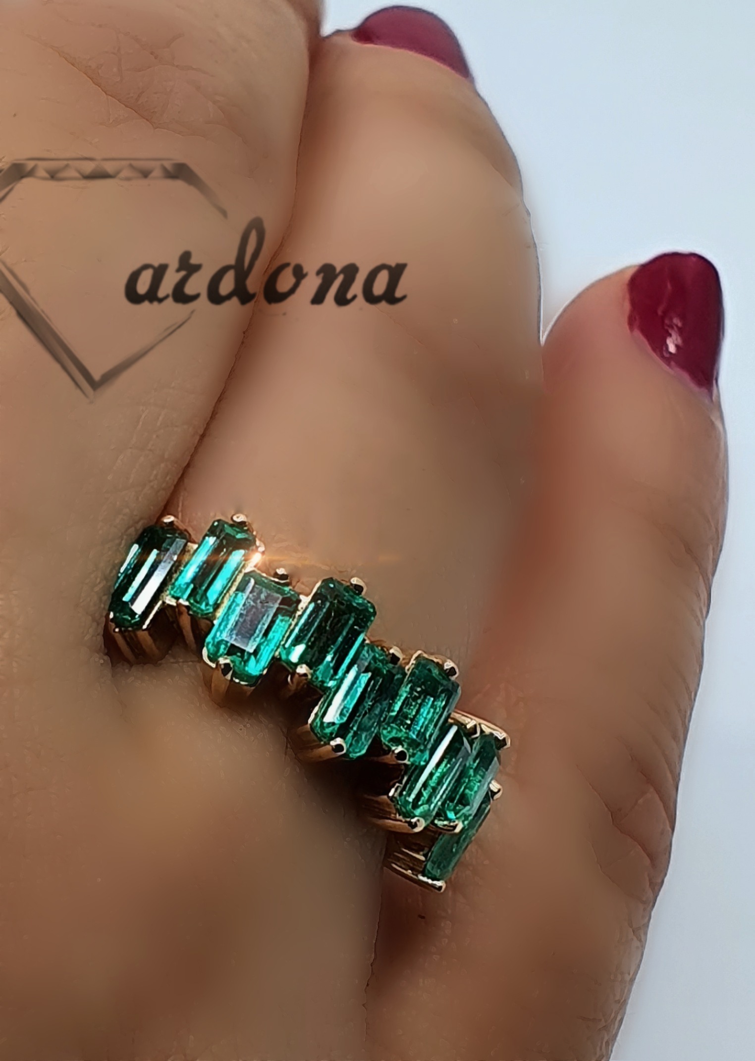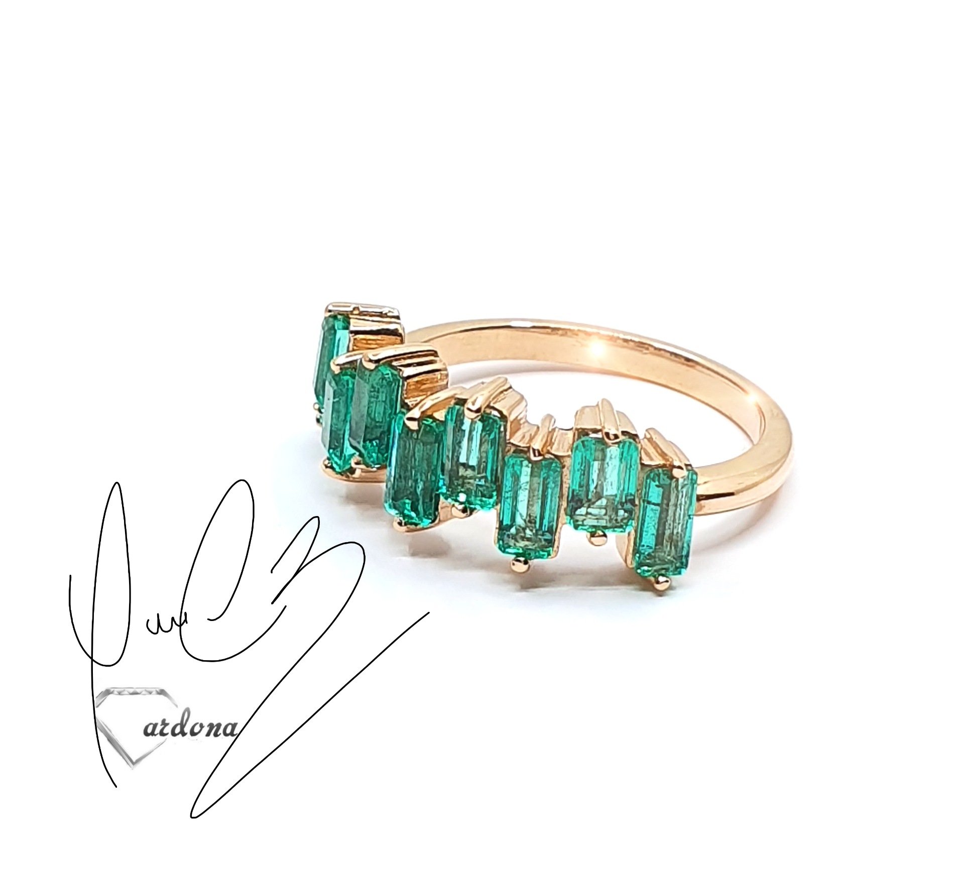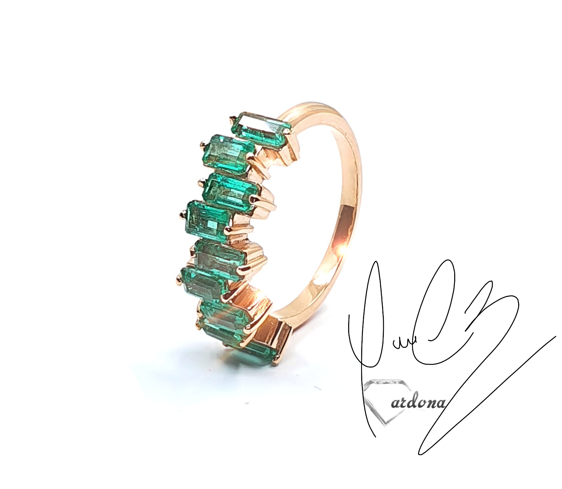 argolla oro rosa y esmeralda natural