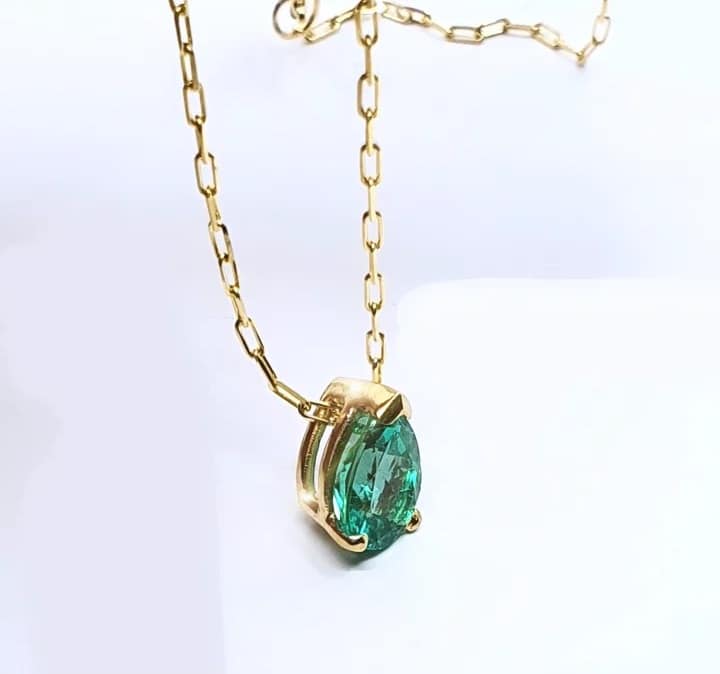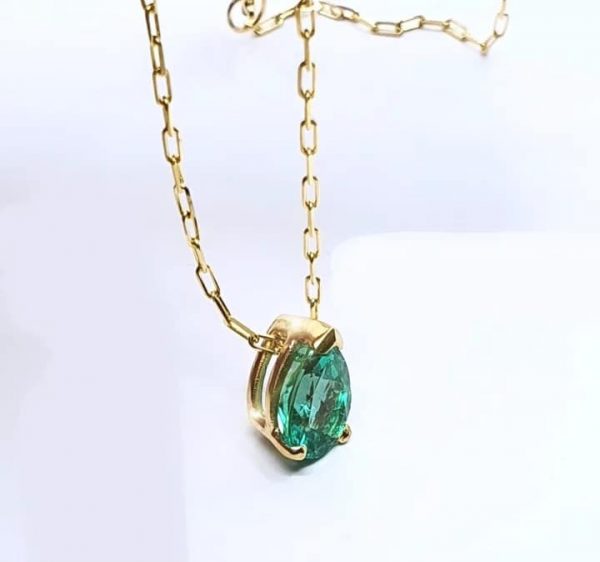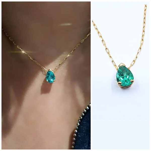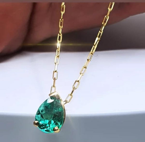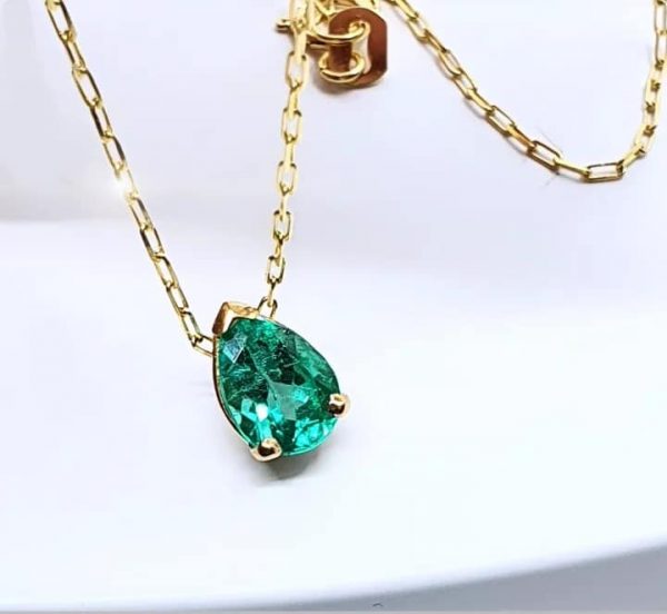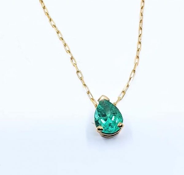 Cadena y dije oro amarillo 18 k con esmeralda natural talla lagrima 0,9 ct peso total aproximado
