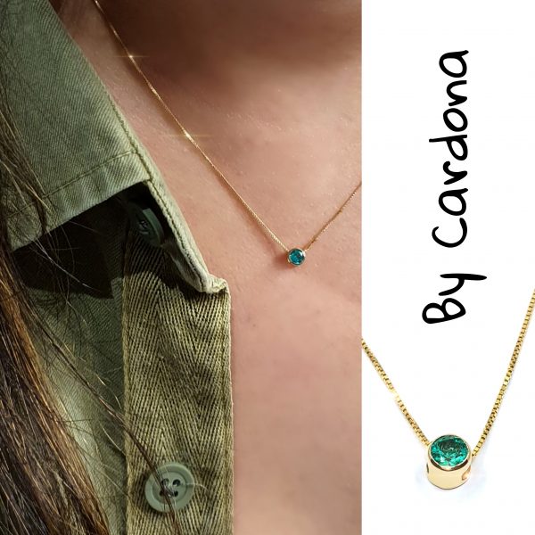 CADENA Y DIJE ORO AMARILLO 18 K CON ESMERALDA NATURAL TALLA REDONDA 0,15 ct