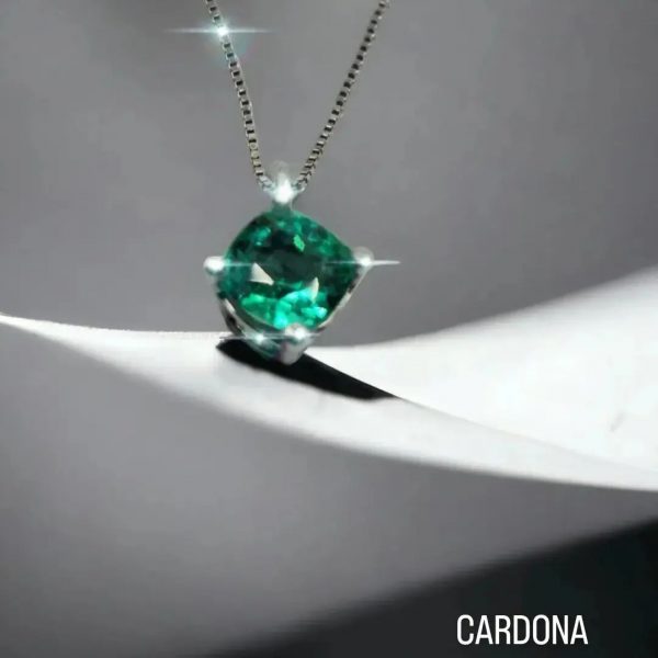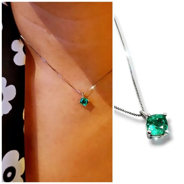 cadena y dije oro blanco 18 k con esmeralda talla cushion