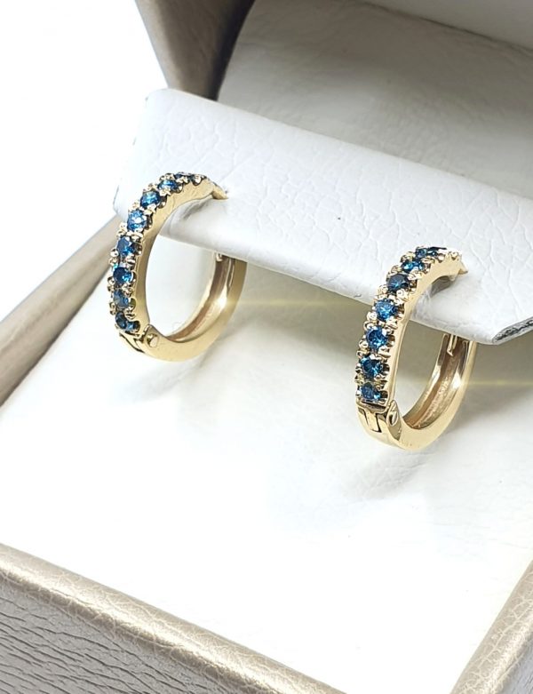 Candongas oro amarillo 18 k con diamante azul 0,16 ct peso total apox