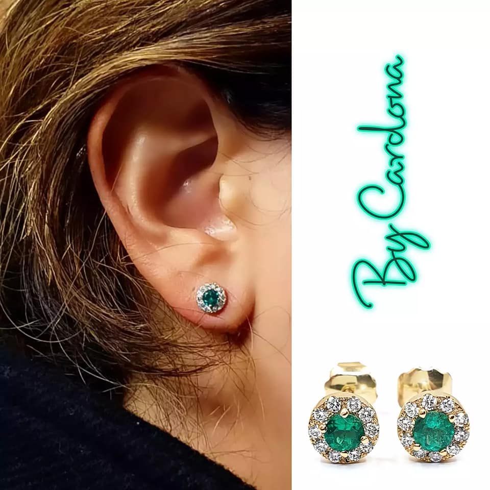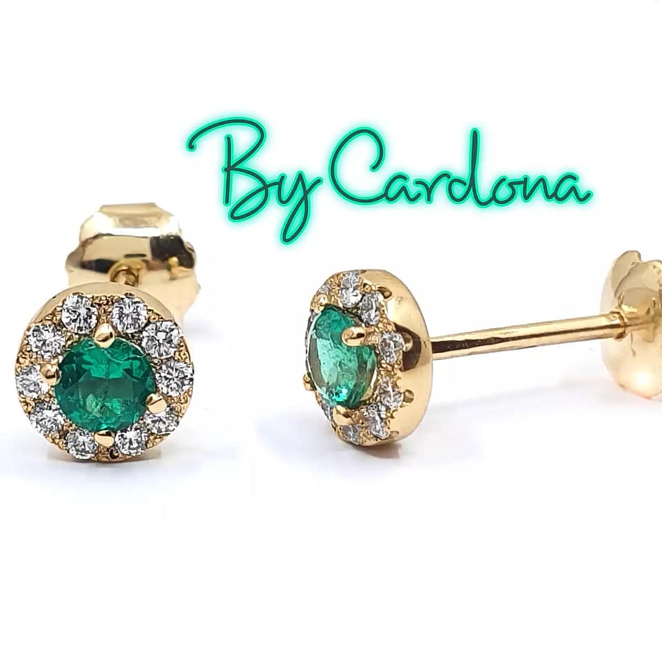 TOPOS ORO AMARILLO 18 K CON ESMERALDA NATURAL Y DIAMANTE
