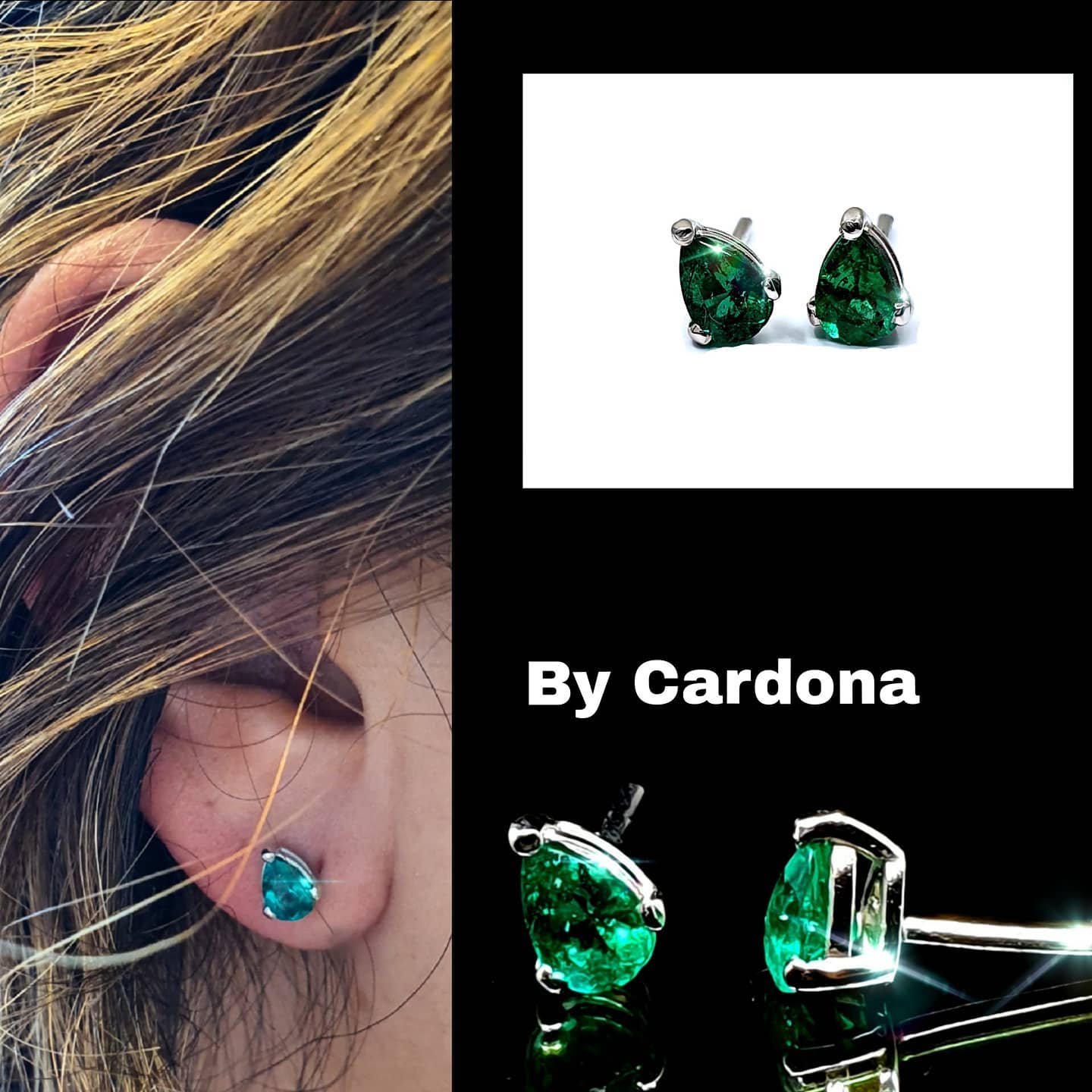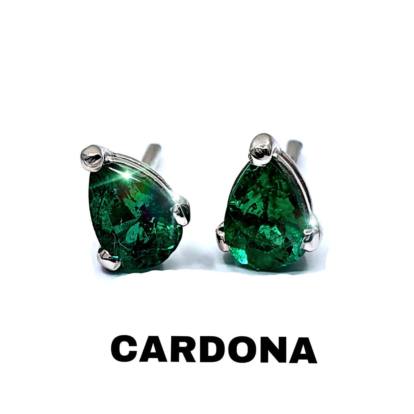 Topos oro BLANCO 18 K CON ESMERALDA talla LAGRIMA 0,85 ct PESO TOTAL APROX